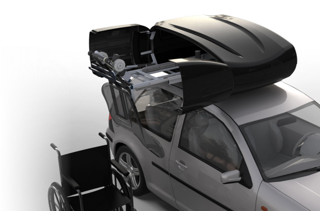 Car roof motorised wheelchair lift/storage